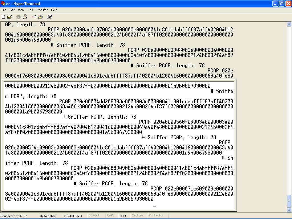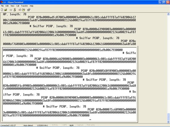 The output from the Thingsquare sniffer firmware is supposed to be fed into Wireshark, hence the PCAP format. Wireshark expects a binary format, please try;