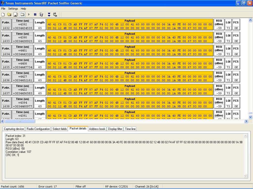 A third option is to use TI SmartRFSniffer in generic mode as suggested in previous posts, the limit with this apporach is that you do not get the alyers above PHY/MAC dissected, which is really ehat you like for a IP based network. There are also other sniffers that can handle more layers, such as ubiqua from ubilogix.