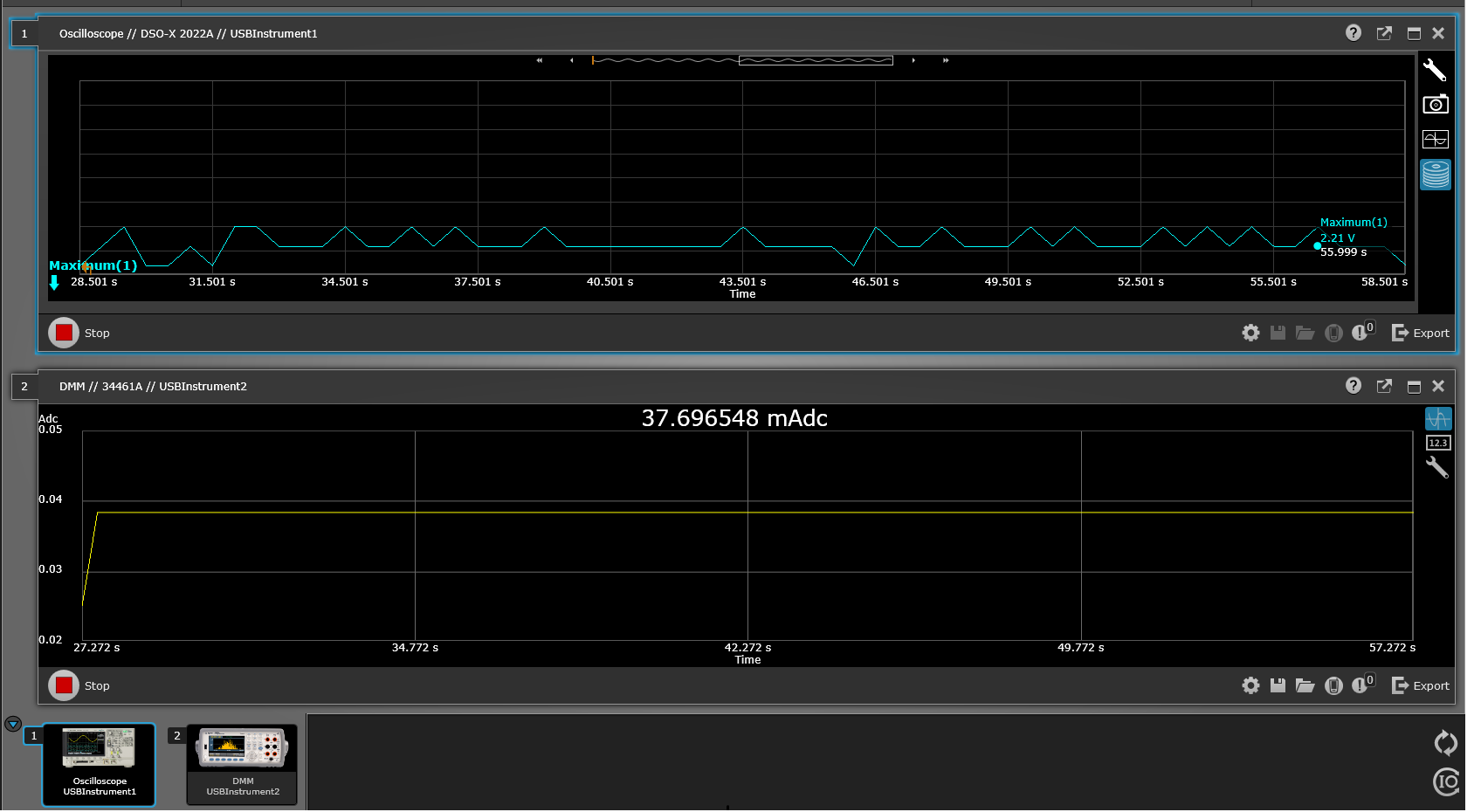 Here is a screenshot where the voltage is about 2.2V and 37.69 mA (about 82.918 mW)