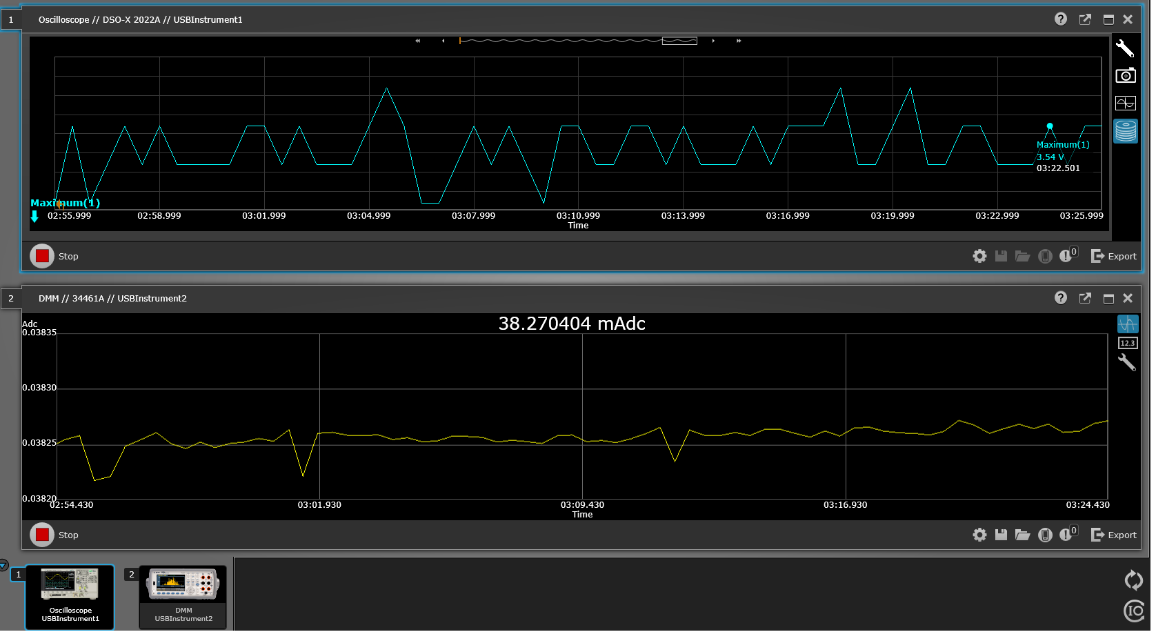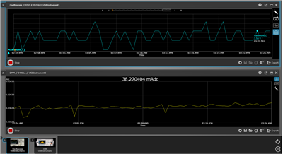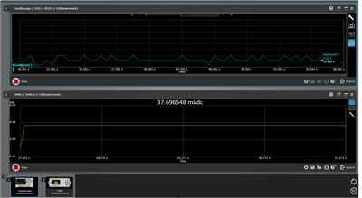 Another screen shot that the voltage is about 3.5V and the current is about 38.27 mA (about 133.914 mW)