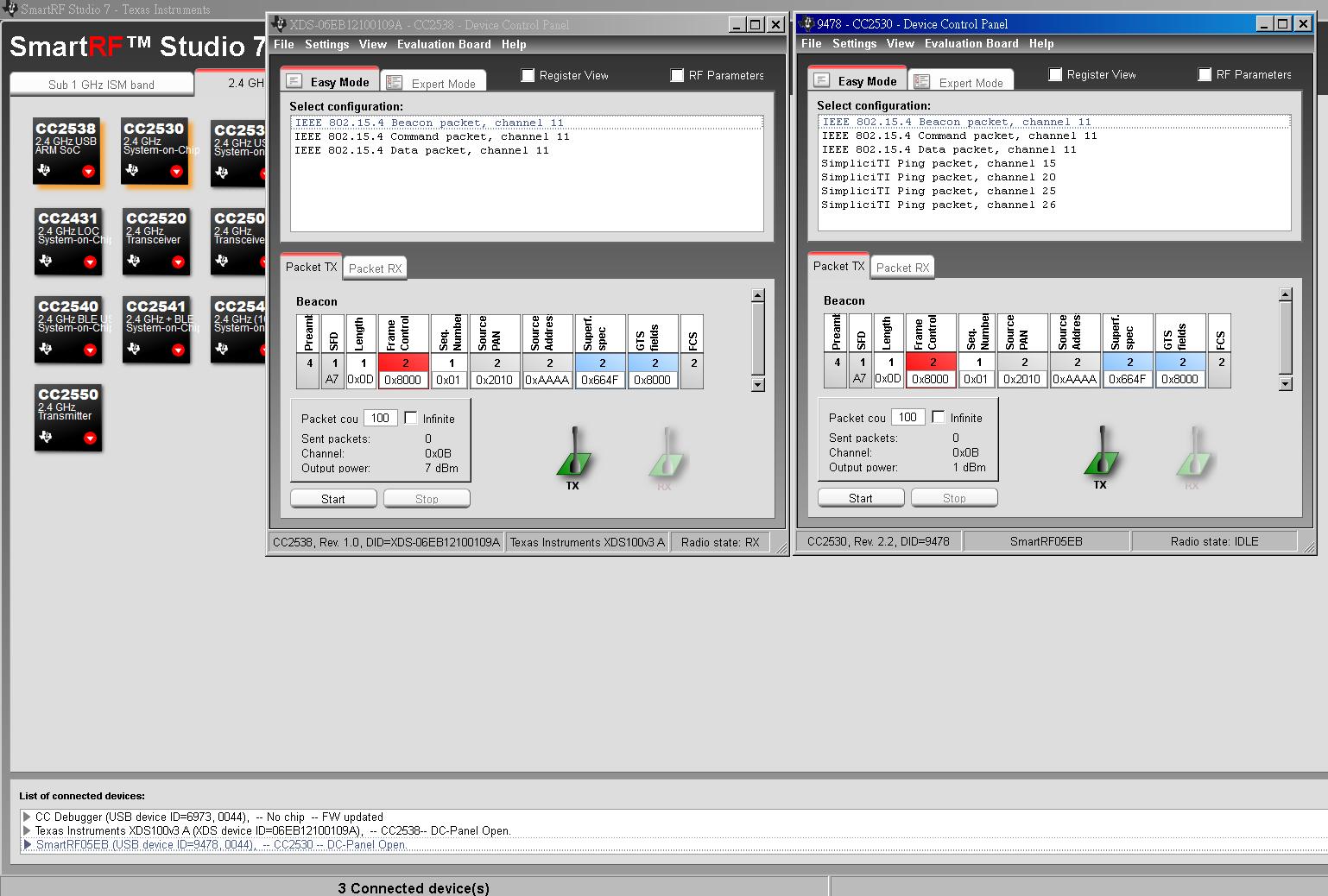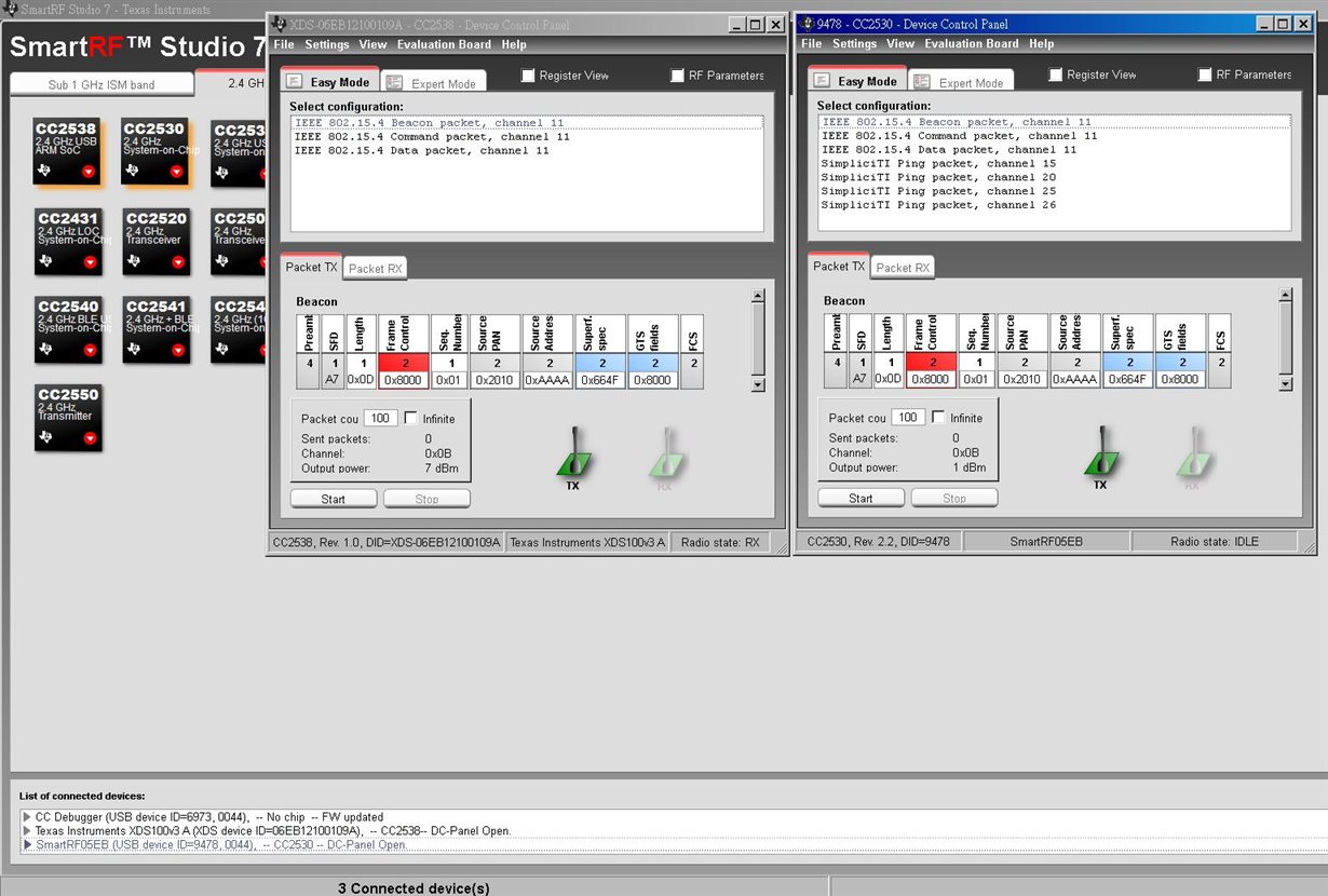 1. could i connect two device on one PC by using two different smartRF04EB cable ?