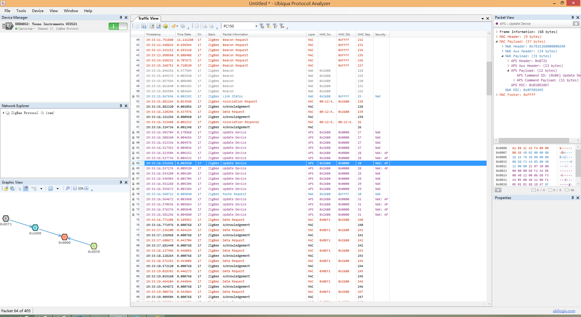 Question 2 : when finish execute NLME_PermitJoiningRequest() ,why there is nothing being catched in ubiqua ?