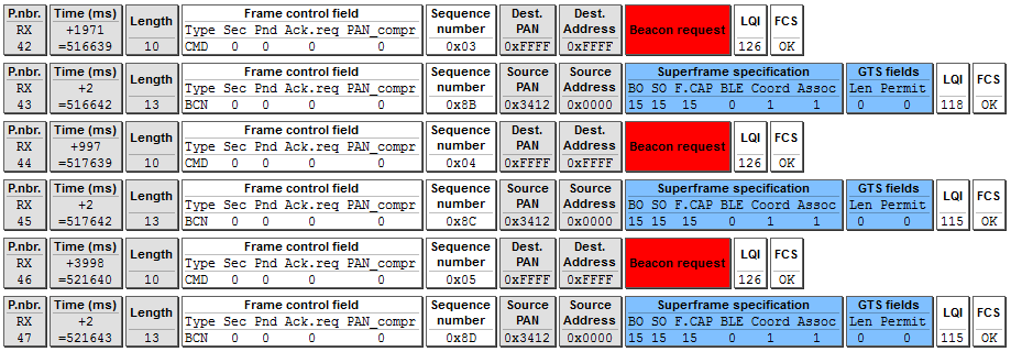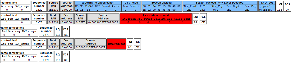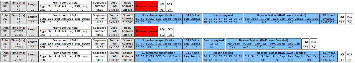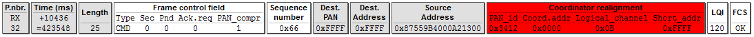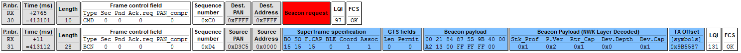 However, using my sniffer I don't see that coordinator actually started: no response to Beacon Request message from another device in all channels.