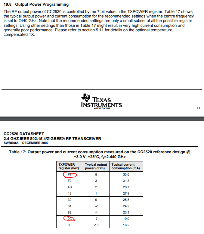 Our customer is using CC2520 in their project, and they found a issue that CC2520 Power consumption doesn't change while the TXPOWER register changed, for example.